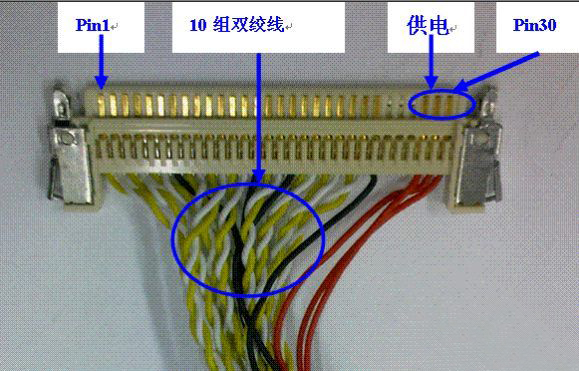1、LVDS Pin1--4 供電 2、5組LVDS數(shù)據(jù)雙絞線