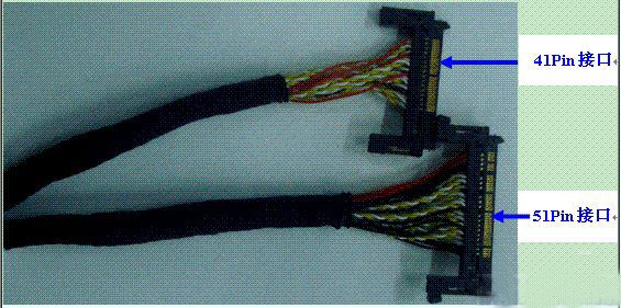 1、120Hz屏不分尺寸大小,需配置2條LVDS連接線 1條51pin,1條41 pin,如右圖;