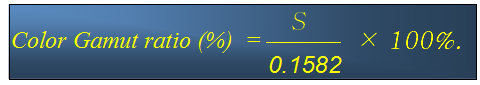 計算紅綠藍色坐標所圍成的色域面積,越大混色產(chǎn)生的色彩越豐富,色彩越鮮艷。